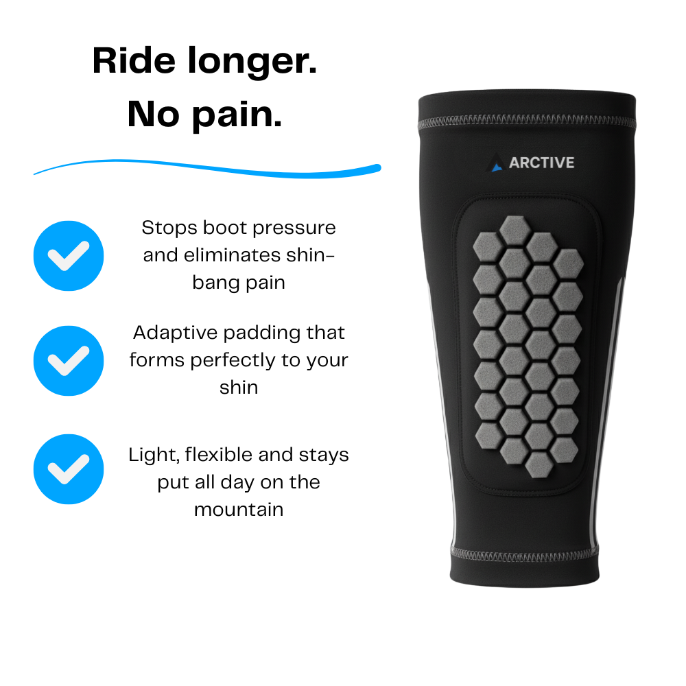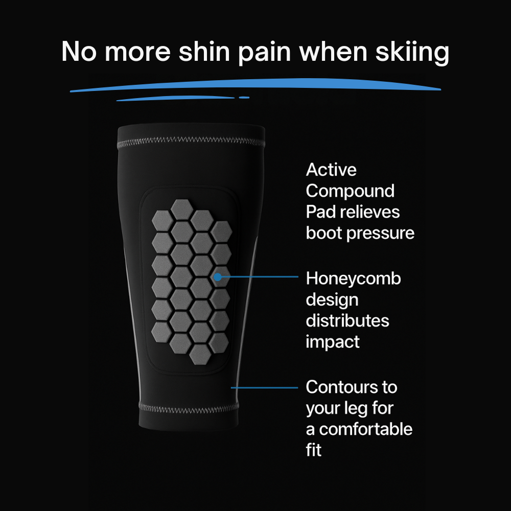 Say goodbye to shin pain and boot pressure. Designed in Canada, SkiShield™ delivers lightweight protection and all-day comfort, so you can ski longer, stronger, and pain-free.